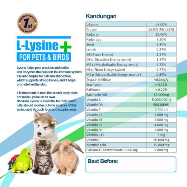 Jual L Lysine For Pets And Birds Lysine Untuk Kucing Anjing Burung Dll Indonesia Shopee Indonesia